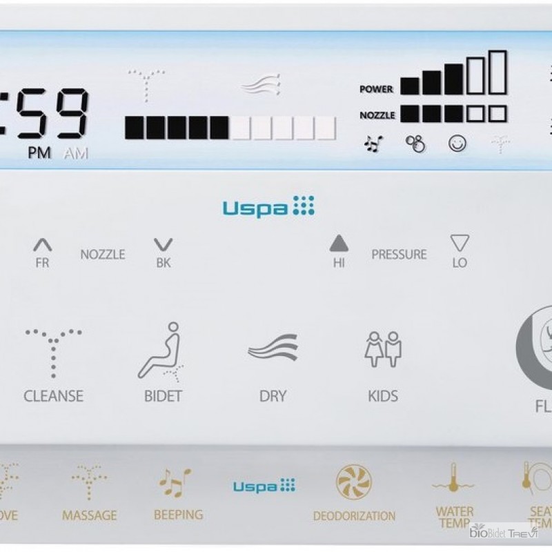 Bồn vệ sinh tích hợp USPA cung cấp khả năng điều khiển đầy đủ chức năng thông qua màn hình cảm ứng, có khả năng điều khiển từ xa không dây với Remote. Với cửa sổ LCD trong suốt cho phép người dùng nhìn thấy các lựa chọn của mình. Màn hình LCD backlit với dao diện màu xanh cho một bầu không khí mát mẻ.