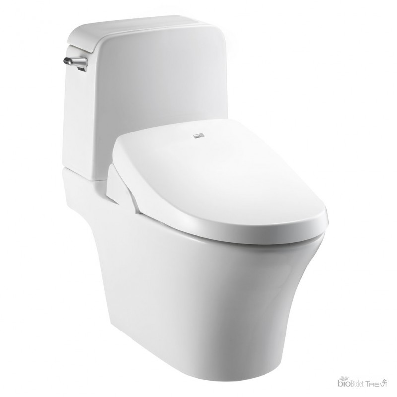 One piece toilet has the toilet housed in one complete unit where two piece toilets have a separate bowl and tank. Offered Bio Bidet seat models are designed to fit all 2 piece toilets and most of 1 piece toilets. The only exception will be rare types of one piece toilets with severe French curves where toilet tank connects to the base of toilet such as type C below.